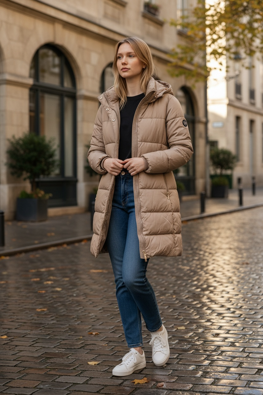 Chamarra Michael K camel con herrajes dorados