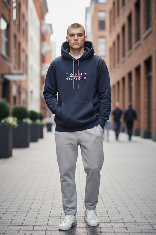 Sudadera Tommy H azul marino letras bordadas para caballero