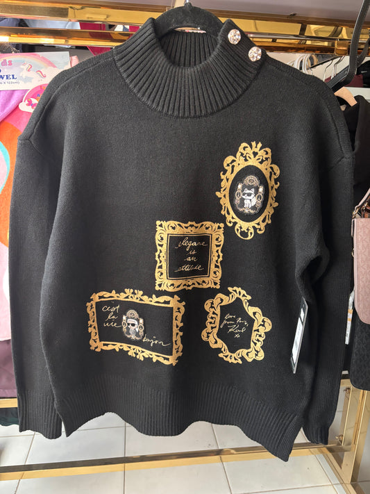 Suéter Karl Lagerfeld negro con botones en el cuello