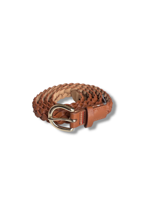 Cinturón Dúo Tommy H camel/trenza placa dorada y negro liso placa plateada
