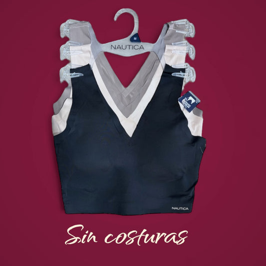 Top náutica azul, gris, neg, tirantes cruzados 3 pzs