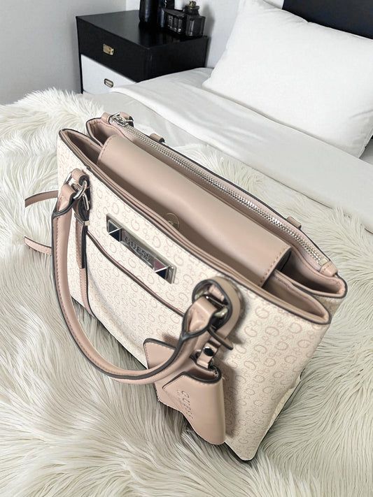 Tote Calvin k camel/crema con monogram, strap con placas plateadas