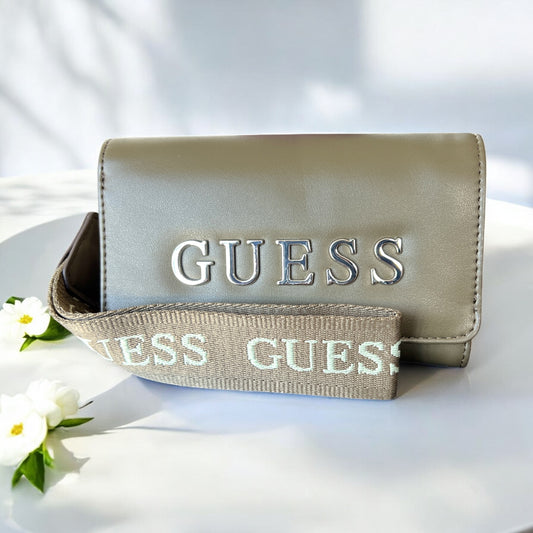 Cartera Guess verde olivo con placa plateada