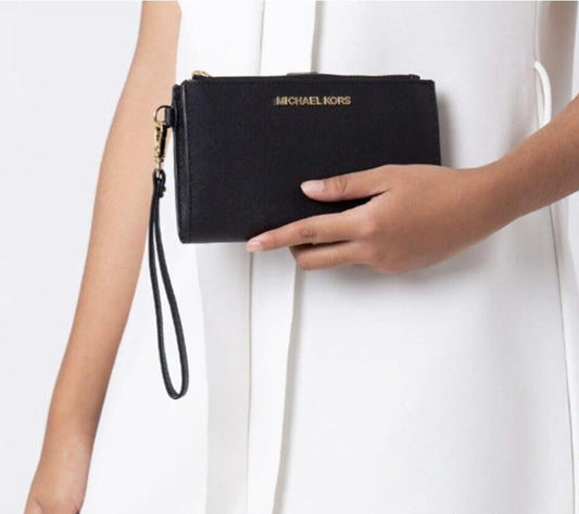 Cartera doble cierre Michael k negra/dorada