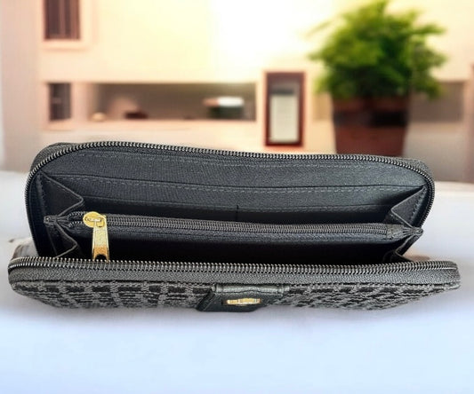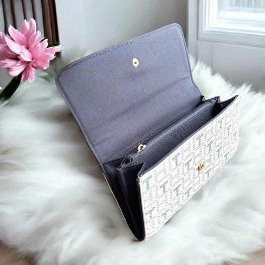Cartera Tommy H crema/gris con monogram y placa dorada