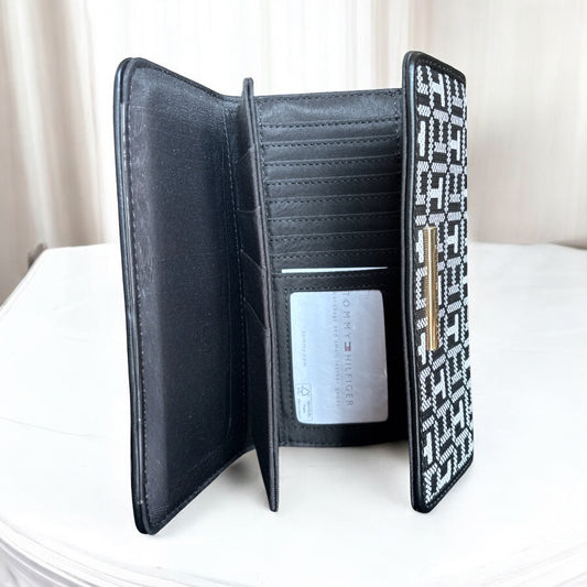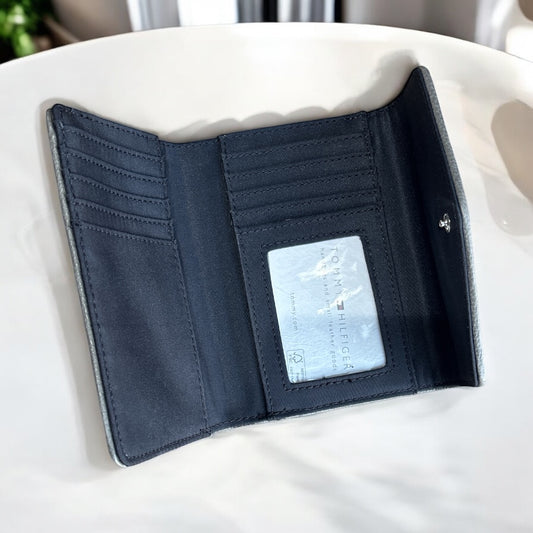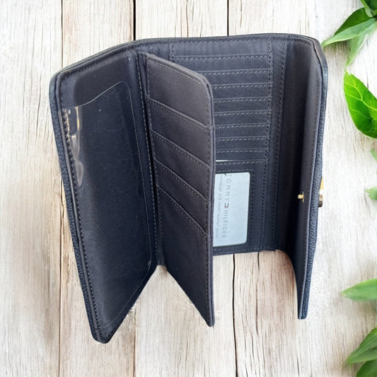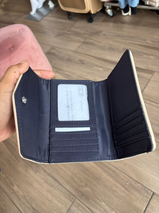 Cartera Tommy H azul marino con monogram blanco y placa dorada