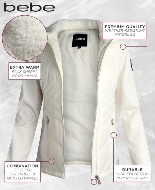 Chaleco Tommy H blanco capitonado, fondo nude y capucha