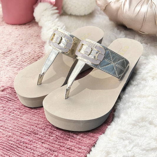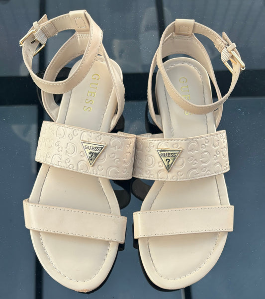 Sandalias Guess beige con placa doradaPrecio habitual $ 1,038.00 MXNPrecio habitualPrecio unitario / por-