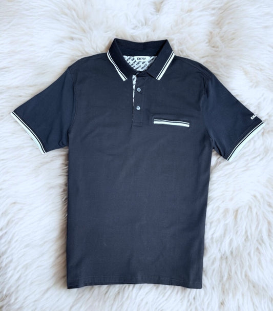 Playera DKNY negra tipo polo, líneas en cuello y manga blanco/negro de caballeroPrecio habitual $ 903.00 MXNPrecio habitualPrecio unitario / por-