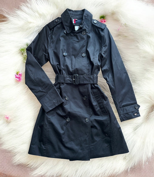 Gabardina Tommy H negra con cinturón