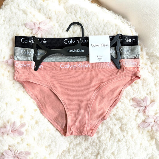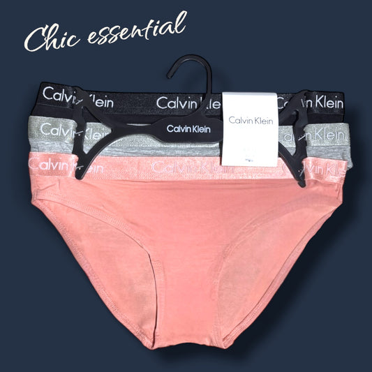 Panties Calvin k varios colores, resorte brilloso con letras blancas 3pzs