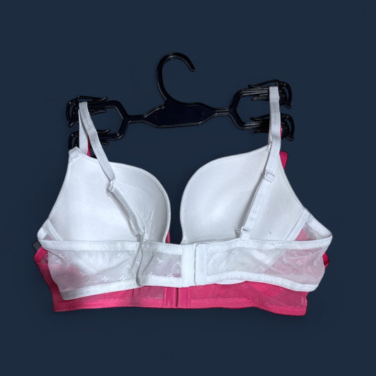 Brasier Tommy H rosa, blanco con monogram y transparencia encaje la espalda 2 pzs
