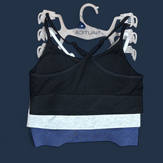 Top náutica azul, gris, neg, tirantes cruzados 3 pzs