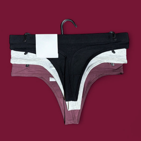 Tangas Calvin k morada, gris, negra, detalle en medio blanco con letras negras 3pzs
