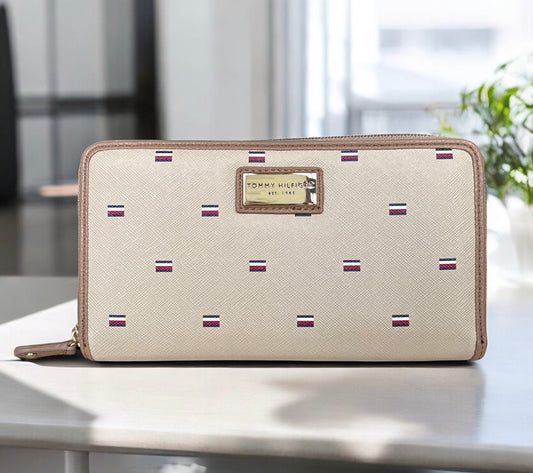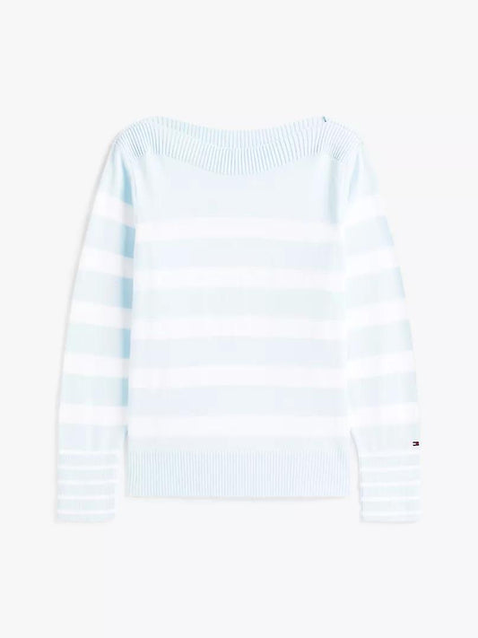 Suéter Tommy H blanco, cuello u ve, bandera pequeña y detalles en mangas