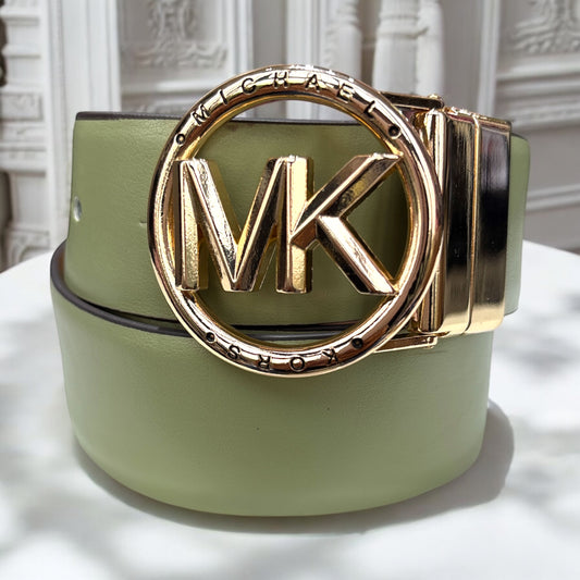 Cinturón Michael k negro/café con monogram reversible con placa dorada