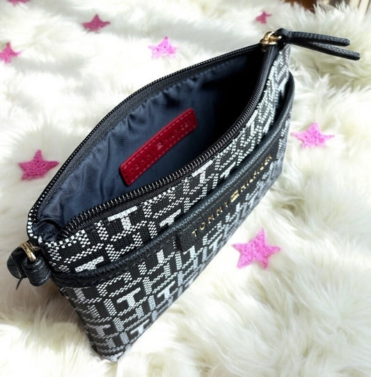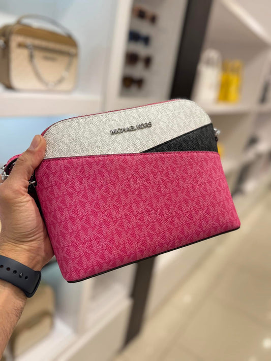 Crossbody Michael k rosa con monogram y detalles en color negro y blanco