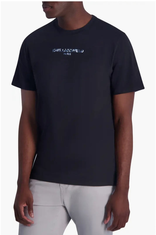 Playera Karl L negra letras camuflaje para caballero