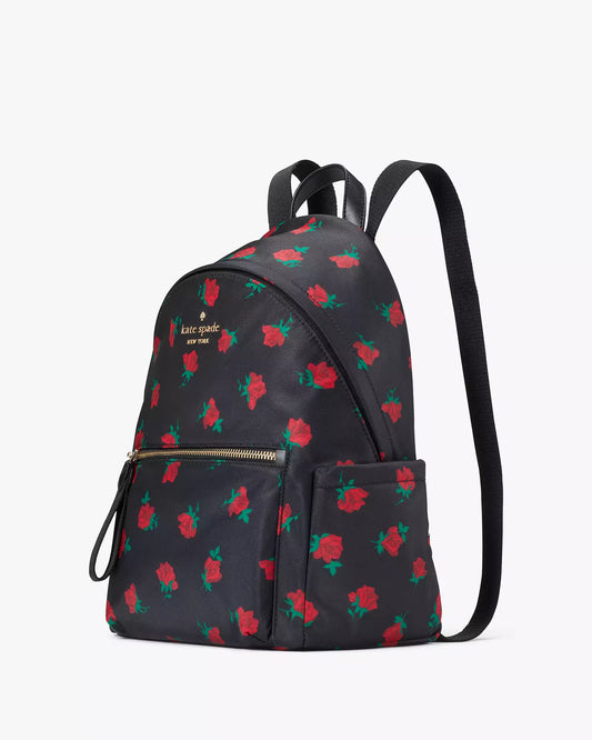 Backpack kate spade negra con rosas