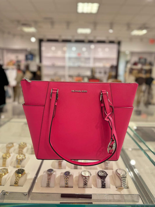 Tote Michael K charlotte rosa hot Pink con placa plateada
