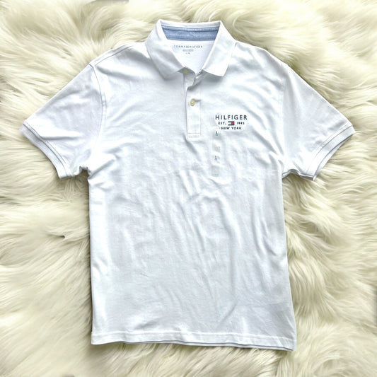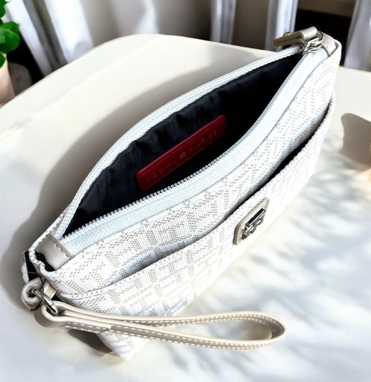 Muñequera Tommy H blanca con monogram beige con placa plateada TH