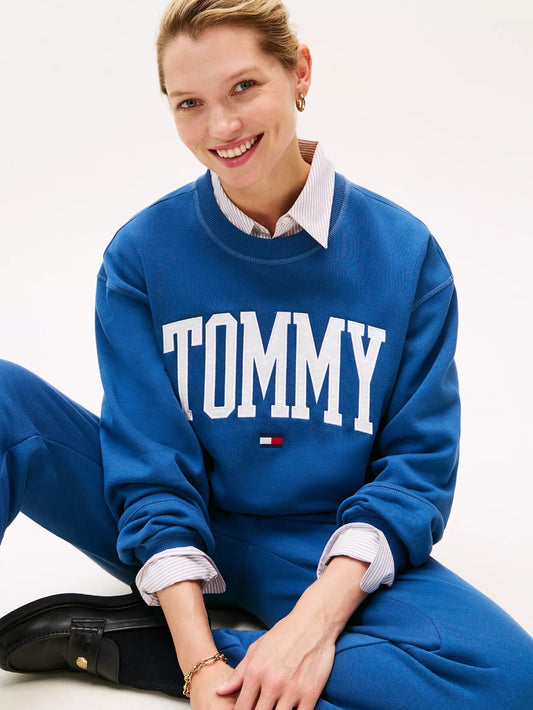 Suéter Tommy H blanco de cuello ancho con bandera bordada en puños