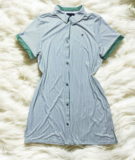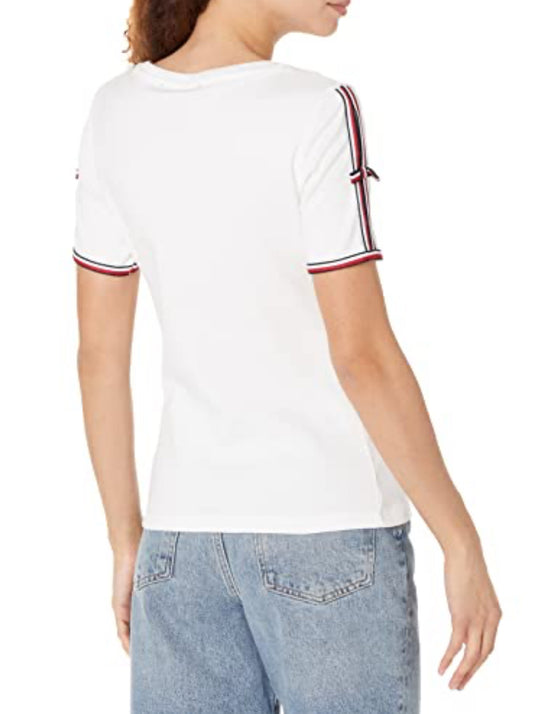 Playera Tommy H blanca, abertura y listón en mangas, blanco, rojo y azul marino