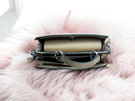 Crossbody Michael k café/chocolate con monogram con strap ajustable y placa dorada