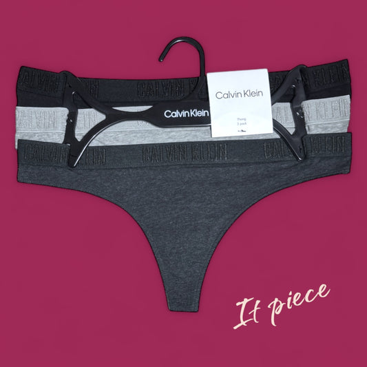 Tangas Calvin k gris, gris, negro y letras bordadas en resorte 3pzs