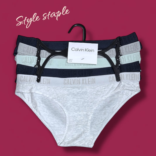 Panties Calvin k varios colores, letras bordadas en resorte 5 pzs