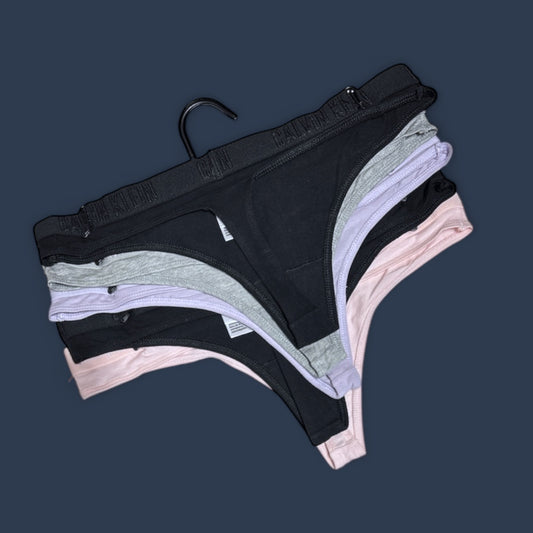 Tangas Calvin k varios colores, letras bordadas en resorte 5 pzs