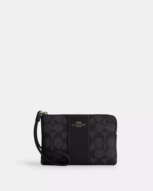 Muñequera Coach negra, monogram y strap