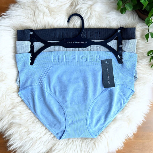 Panties Tommy H azul claro, gris y azul marino con letras grabadas 3pzs