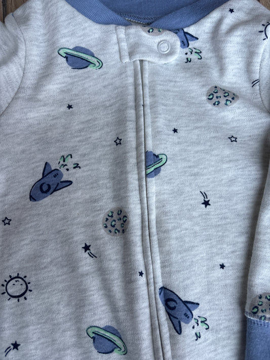 Mameluco para bebé Carter’s gris/azul, estampado de planetas, cohetes y cierre