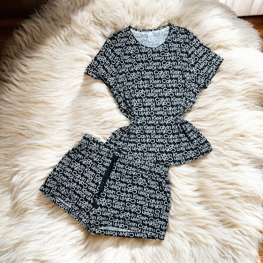 Conjunto Overol short DKNY bebé beige con playera y gorrito Bucket