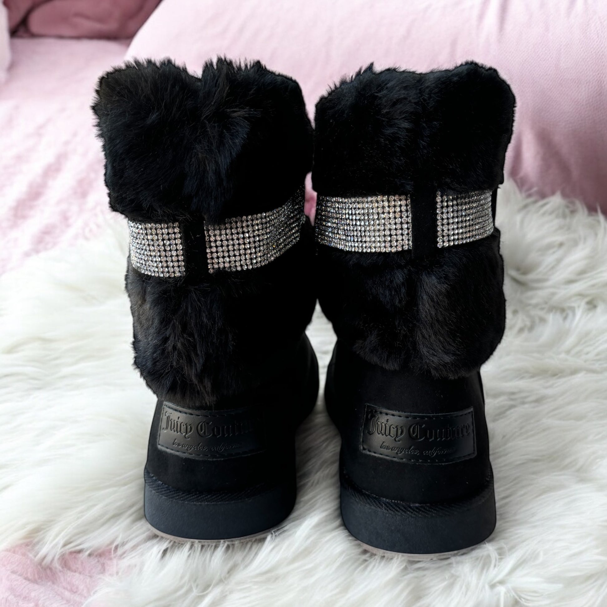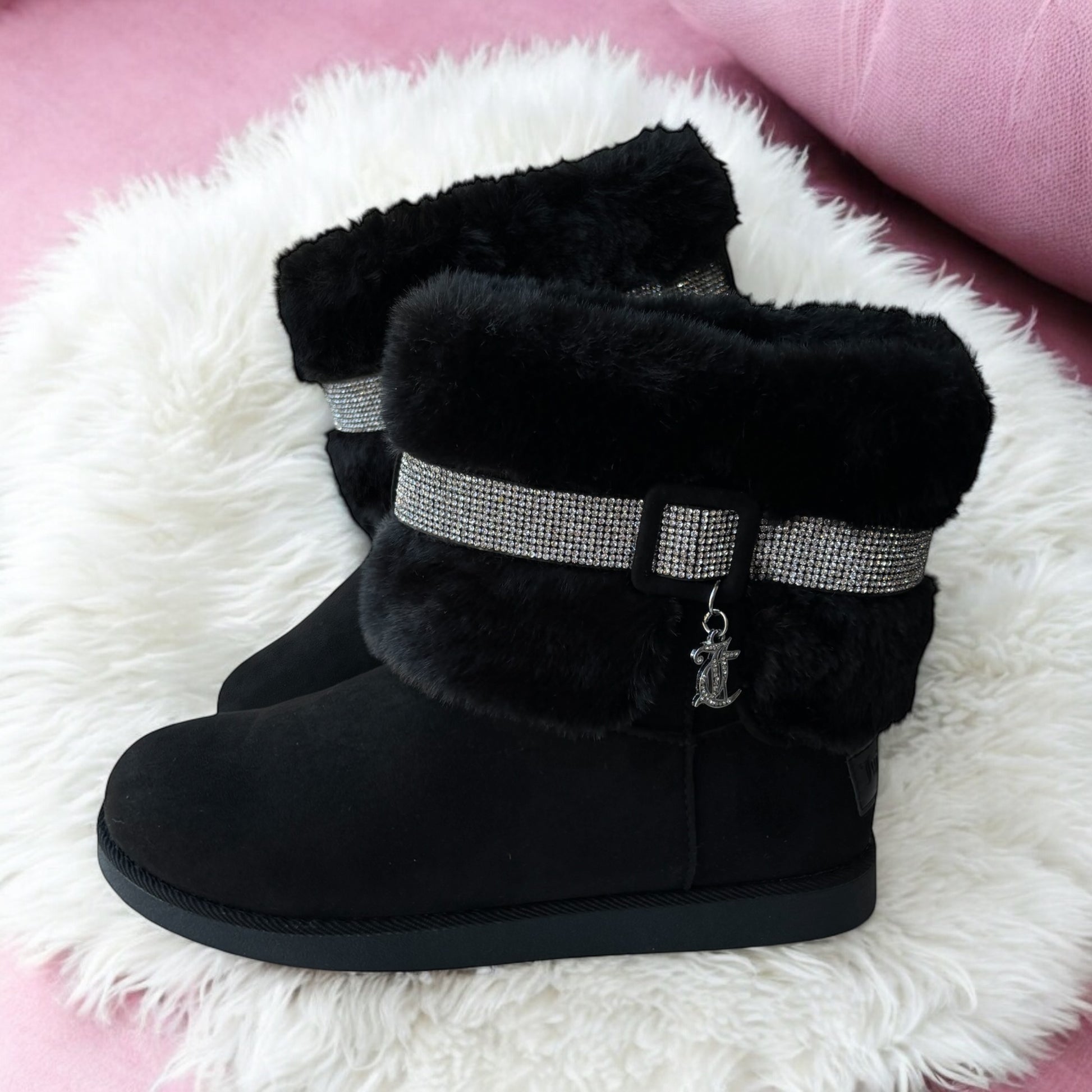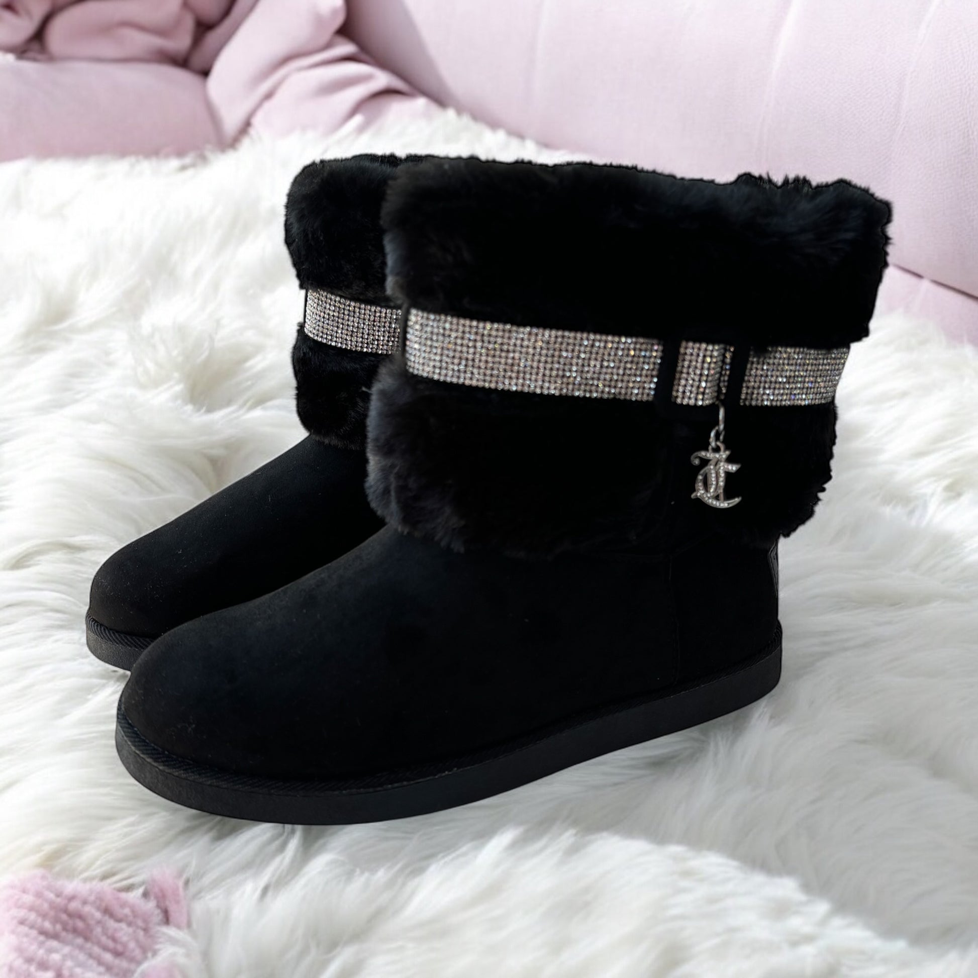 Botas de la marca Juicy C negra con peluche y brillos súper cómodas y calientitas