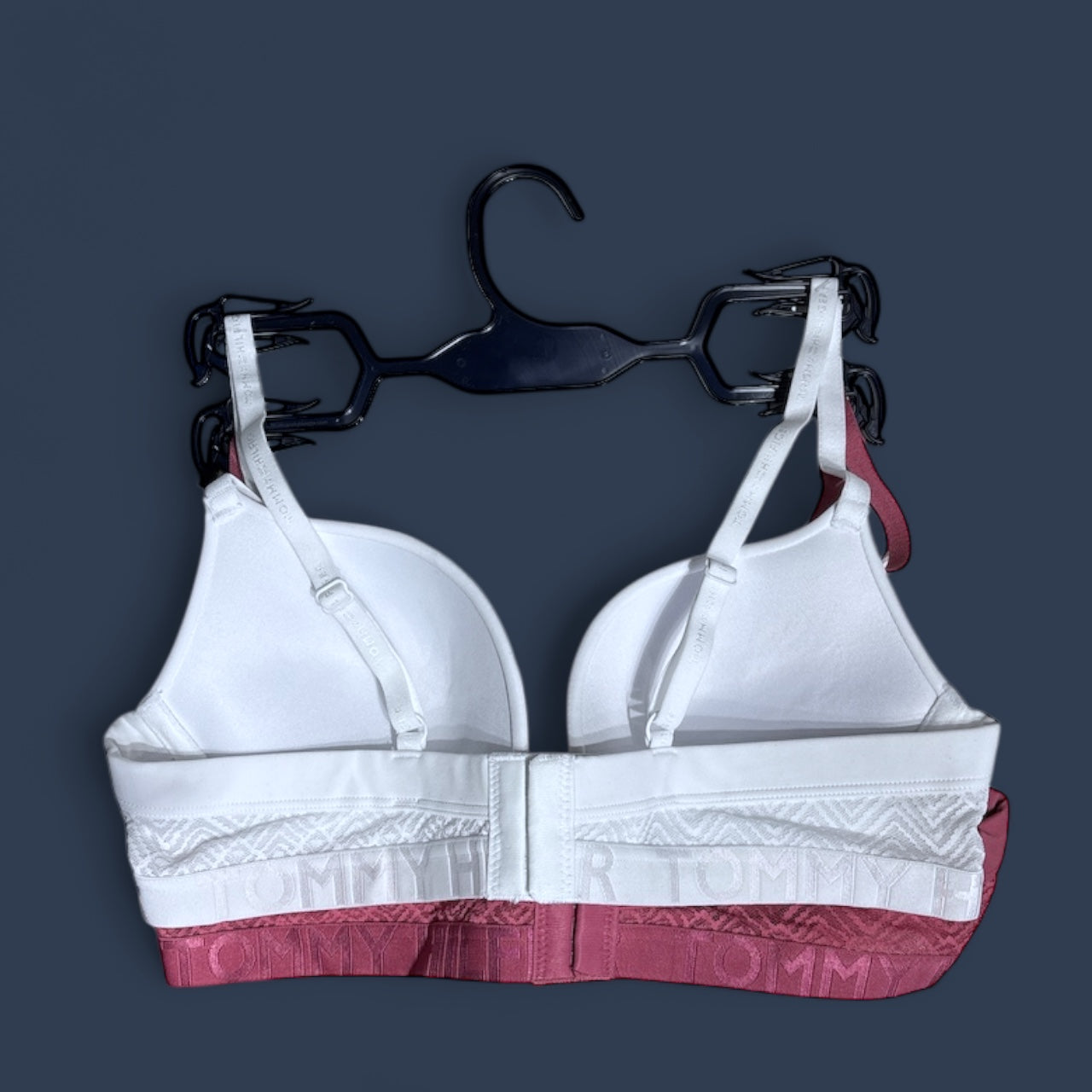 Brasier Tommy H en elegante palo de rosa y blanco con detalles en encaje y letras en resorte. Confeccionados por Tommy Hilfiger, estos hermosos brasieres te brindan la comodidad y el estilo que buscas. ¡Consigue 2 piezas ahora!