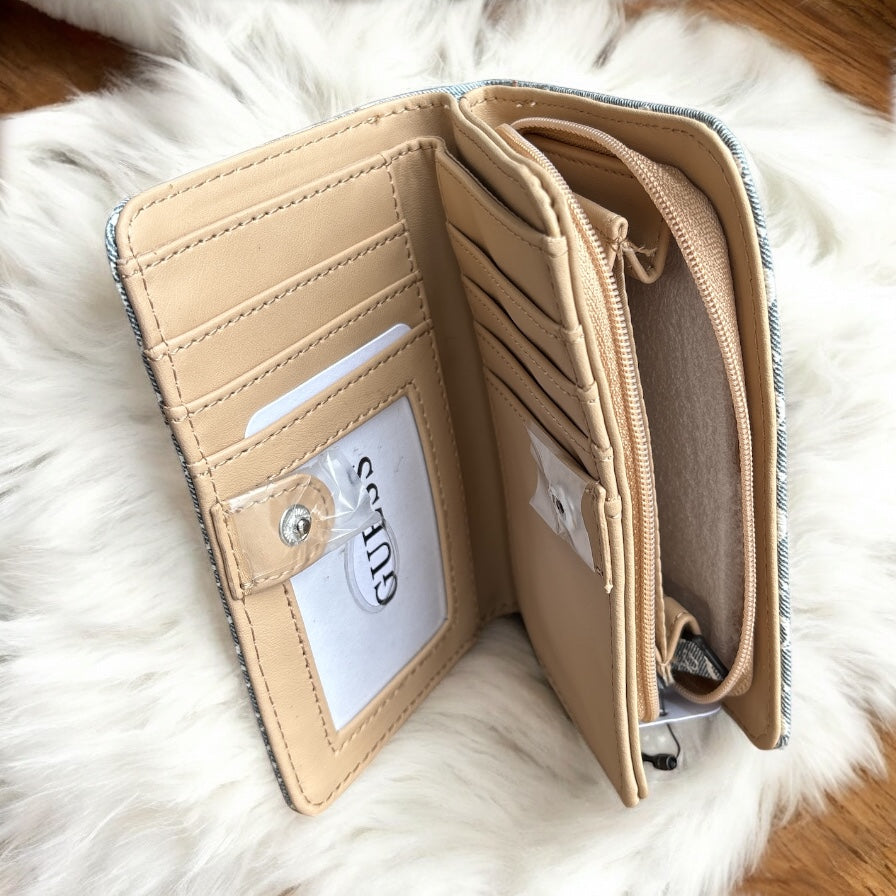 Esta cartera Guess gris cuenta con un diseño elegante y versátil, perfecto para completar cualquier atuendo. Hecha con materiales de alta calidad, ofrece un sistema práctico de almacenamiento con múltiples compartimentos para mantener tus pertenencias organizadas. Dale un toque de estilo y funcionalidad a tu día con esta cartera de moda.