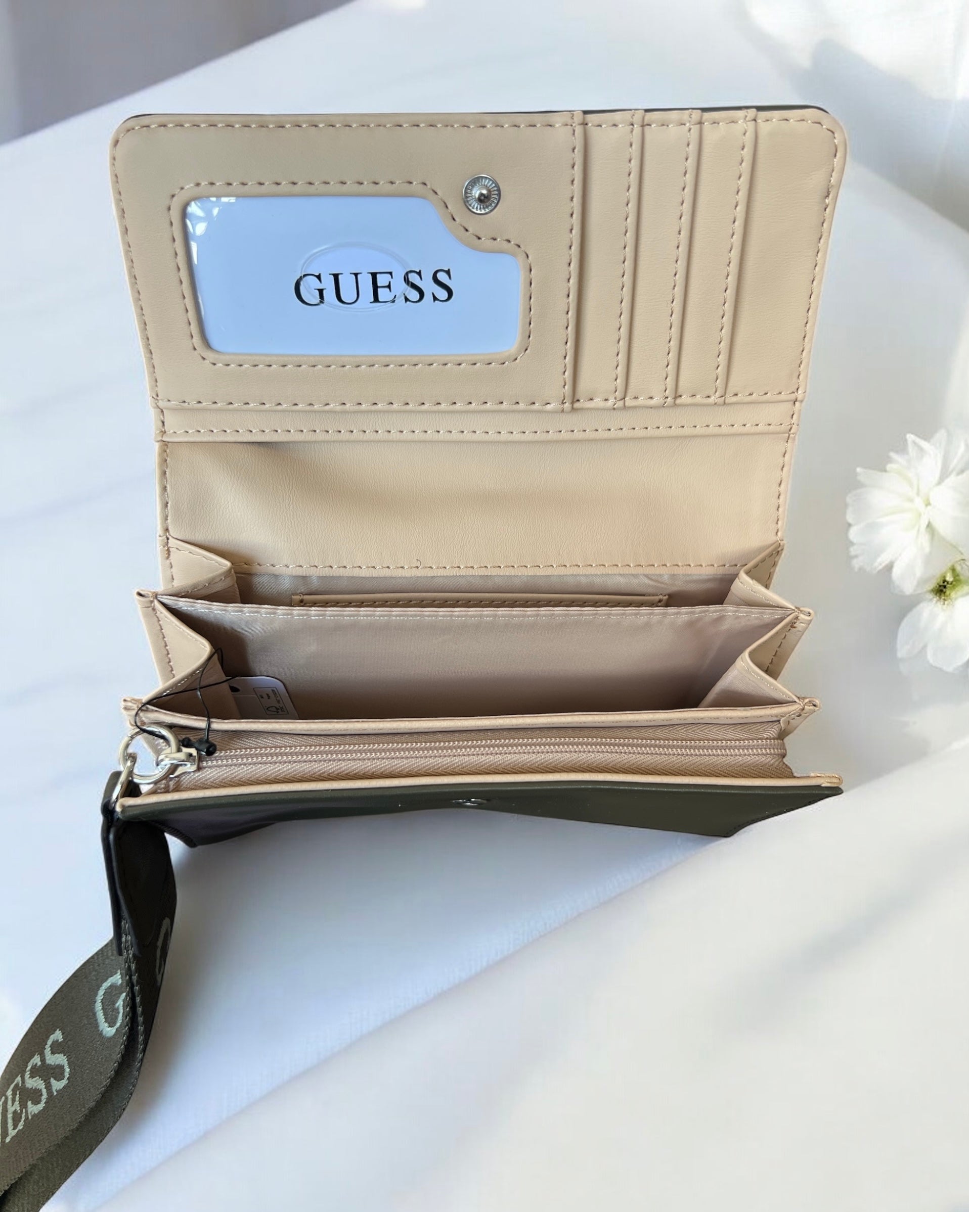 Está cartera de Guess es la combinación perfecta de elegancia y modernidad. Con su placa plateada, le da un toque sofisticado a cualquier outfit. Fabricada con materiales de alta calidad, es resistente y duradera. Luce a la moda y siéntete confiado con esta cartera en tus manos.