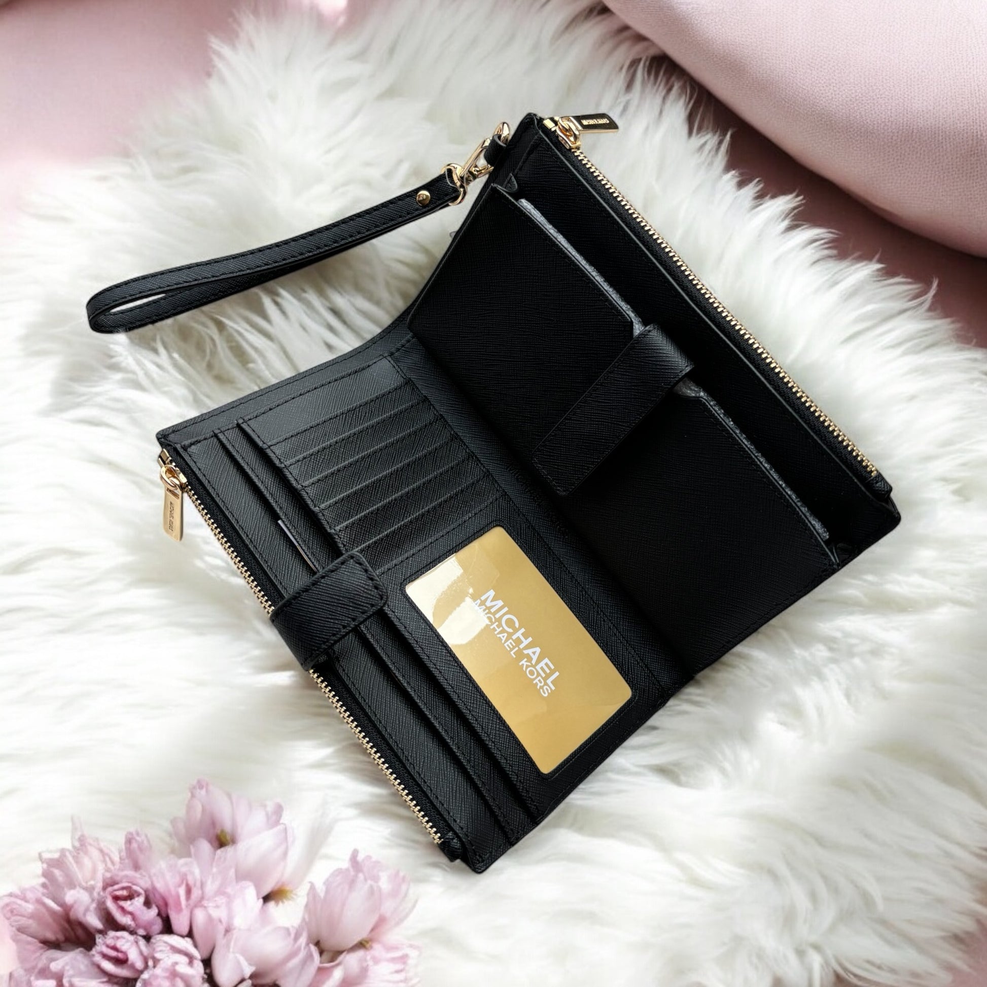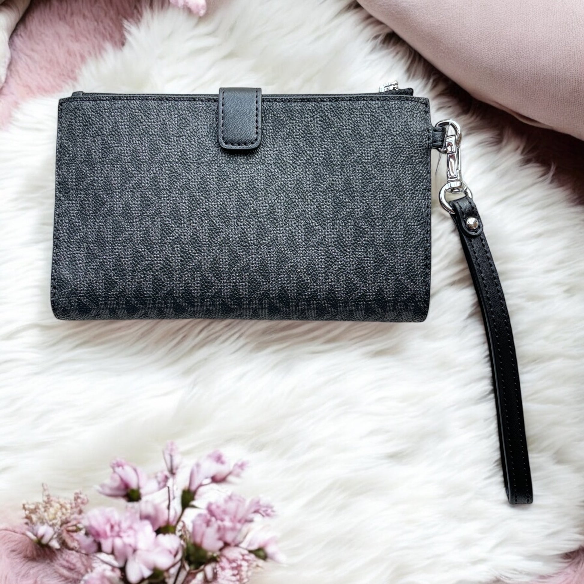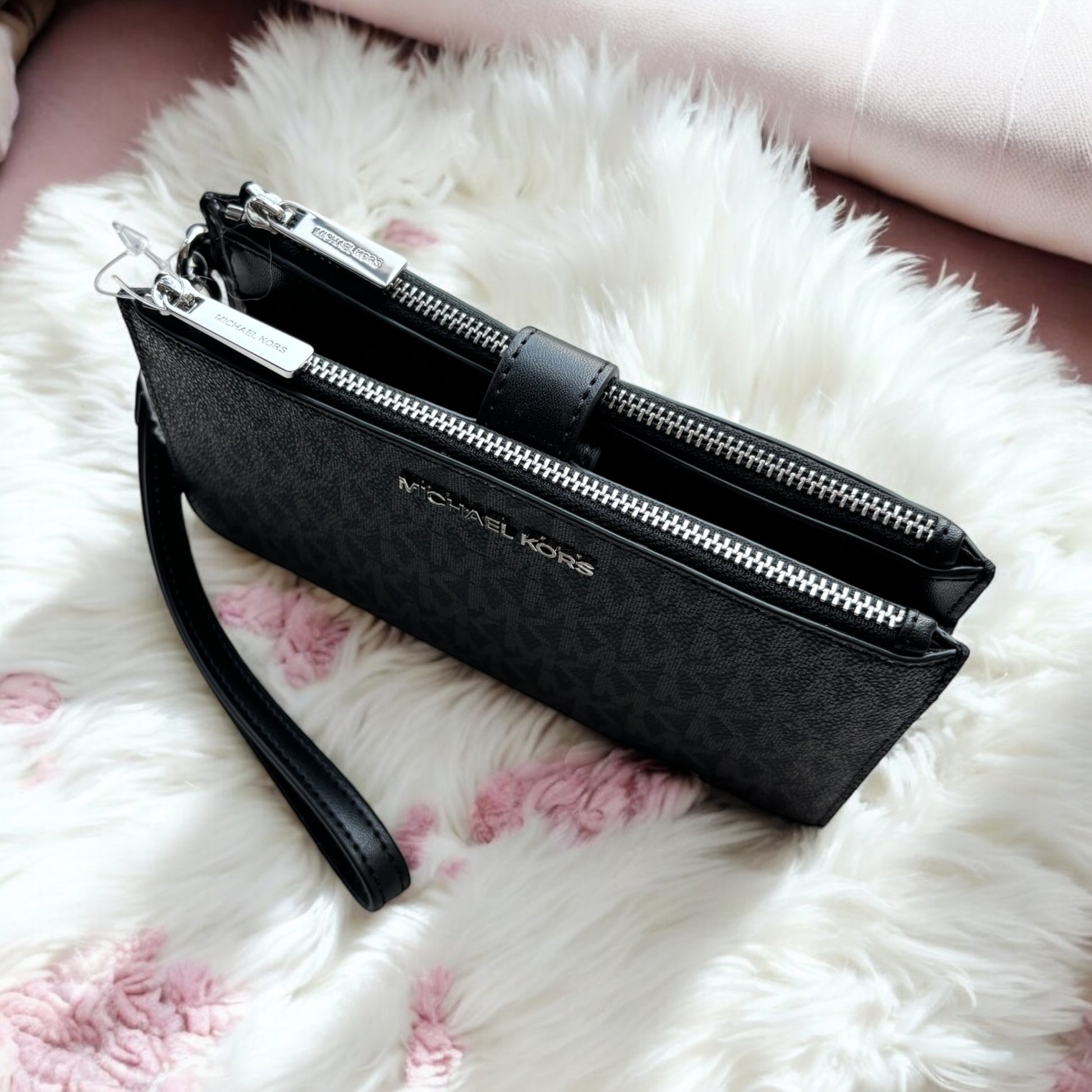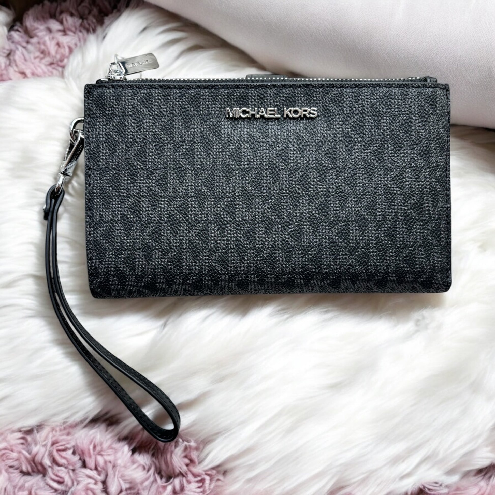 Cartera Michael K negra con monogram doble cierre