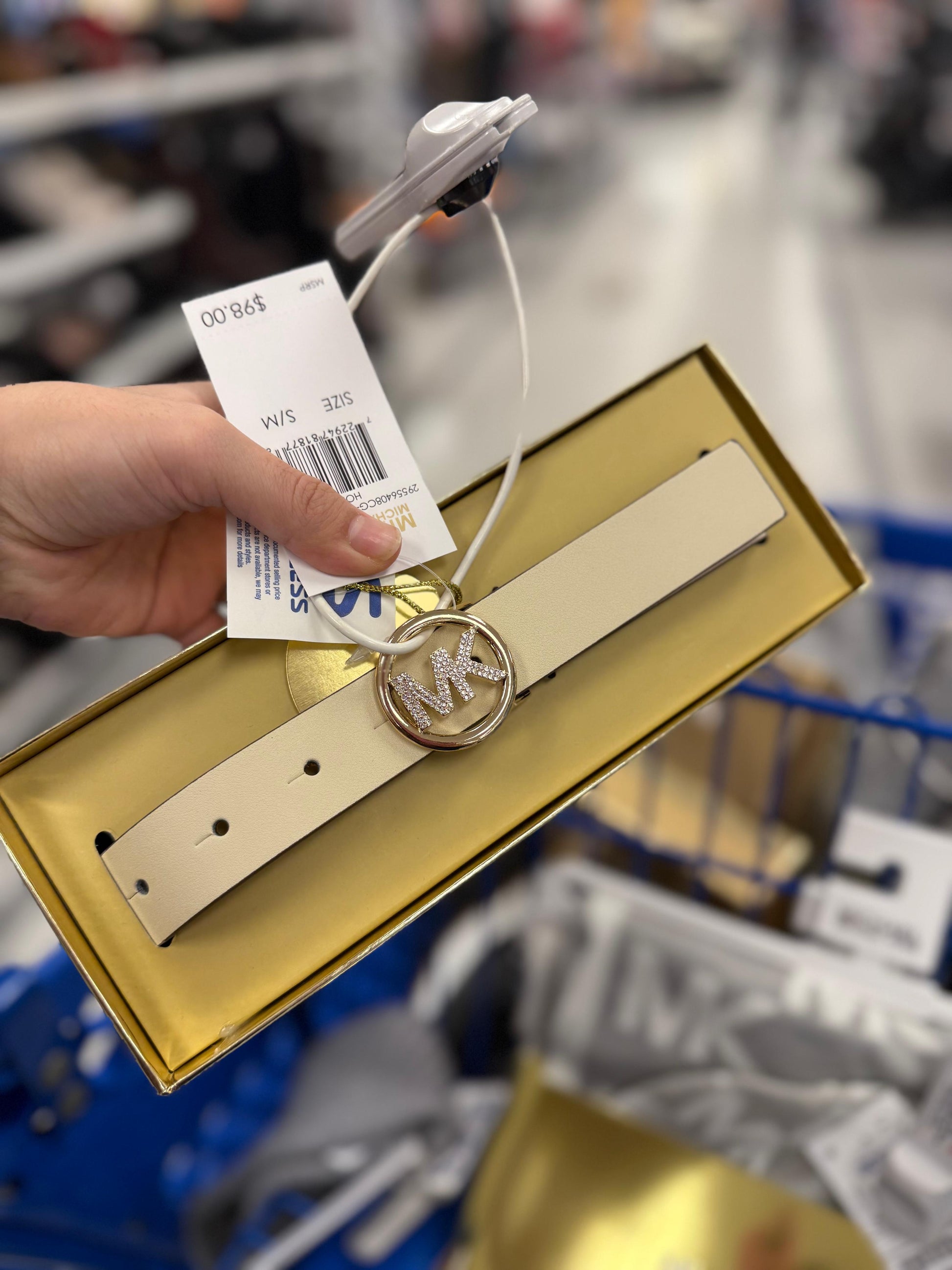 Este cinturón beige Michael Kors es una opción hermosa y elegante para completar tu look. Con una placa dorada y brillos, le dará un toque de brillo a tu atuendo. Además de ser un accesorio de moda, también te proporcionará un ajuste cómodo y seguro. ¡Un complemento imprescindible para cualquier armario!
