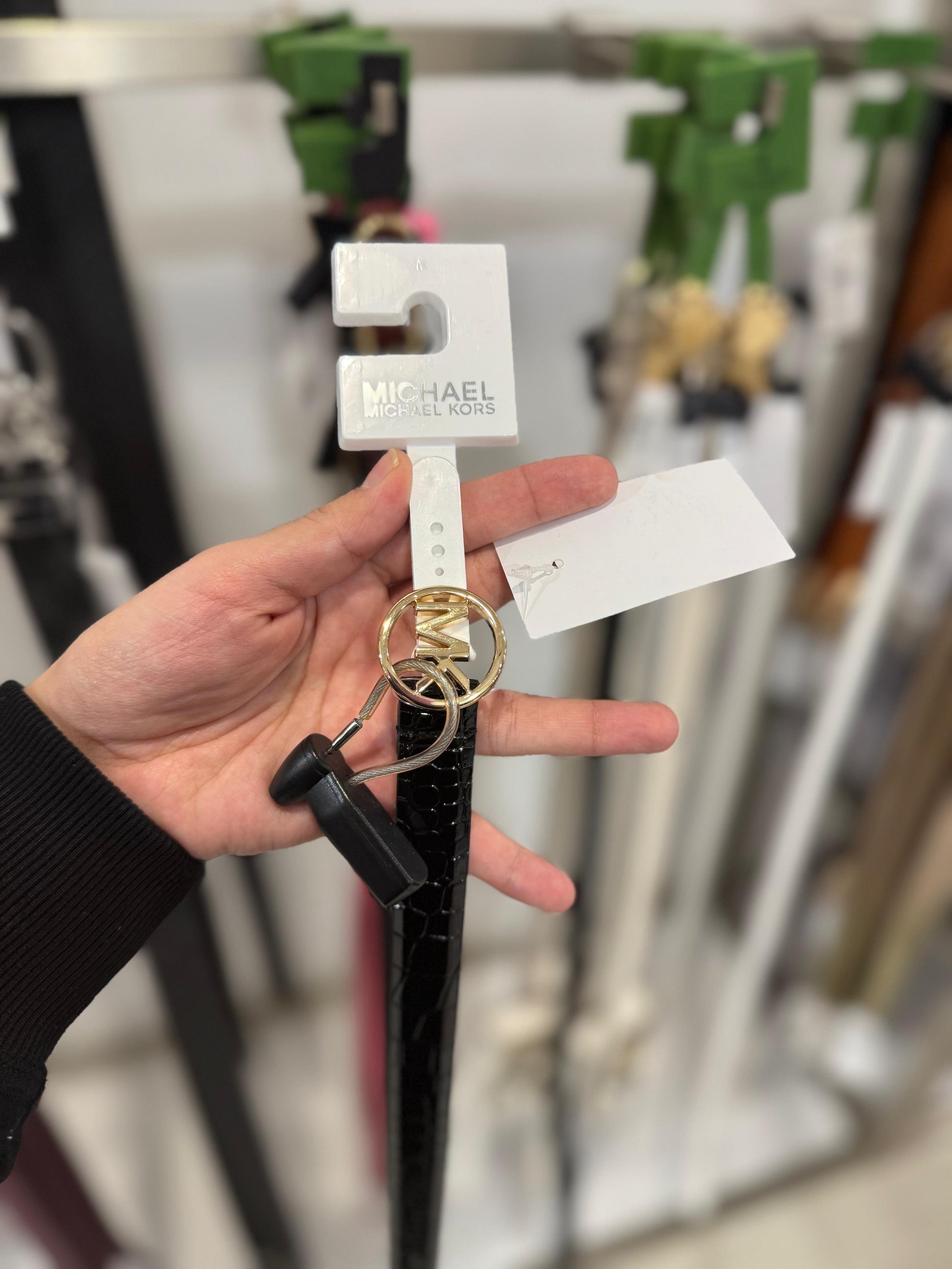 ¡Viste con estilo y elegancia con el cinturón Michael Kors negro tipo charol! Este hermoso cinturón delgado presenta una textura de charol y una sofisticada placa dorada. Úsalo para completar tus outfits y destacar tu gusto por la moda. ¡Haz una declaración de moda con este elegante accesorio de Michael Kors!