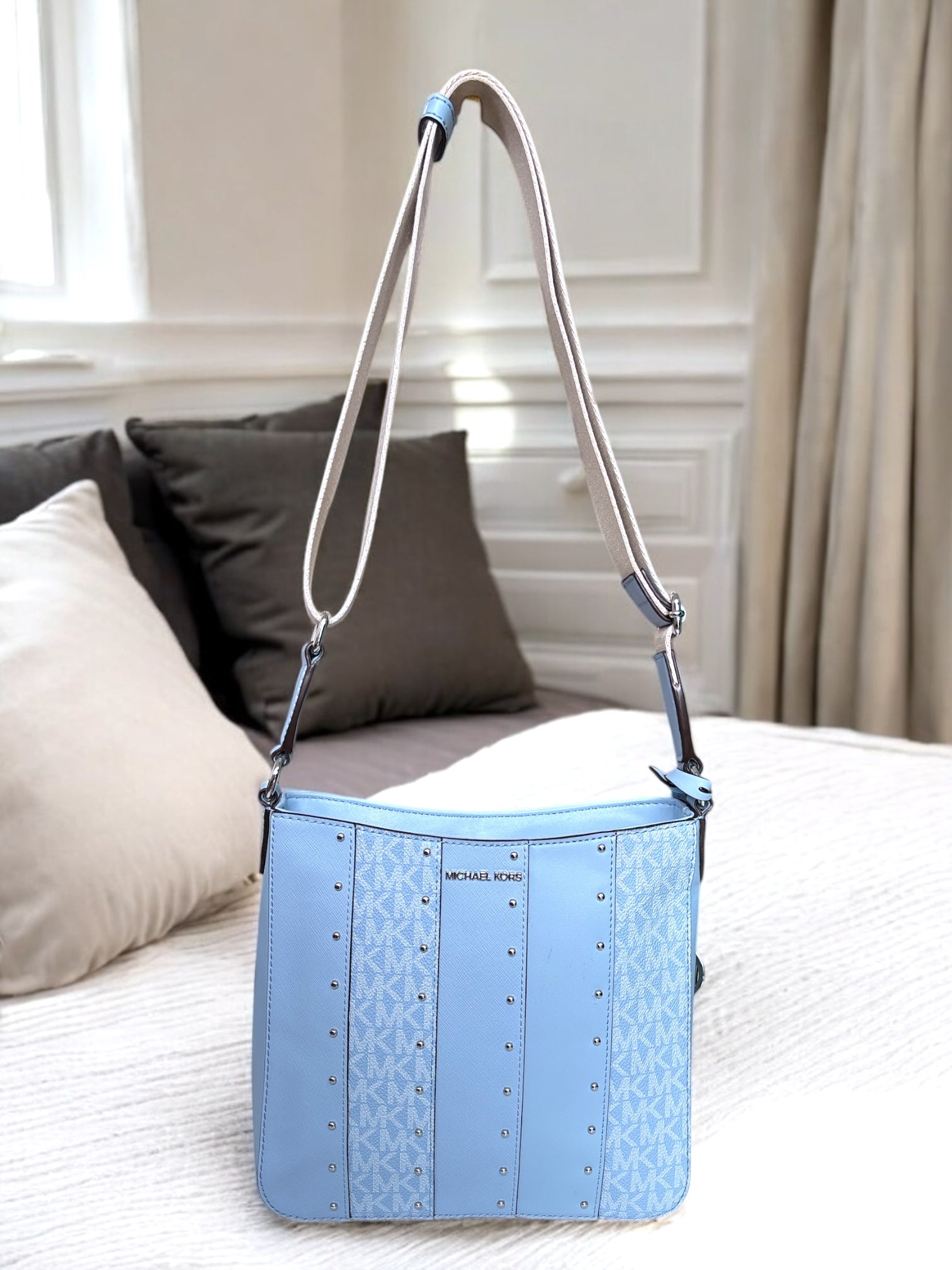 Crossbody Jet Set Small Studded Michael K, azul con estoperoles