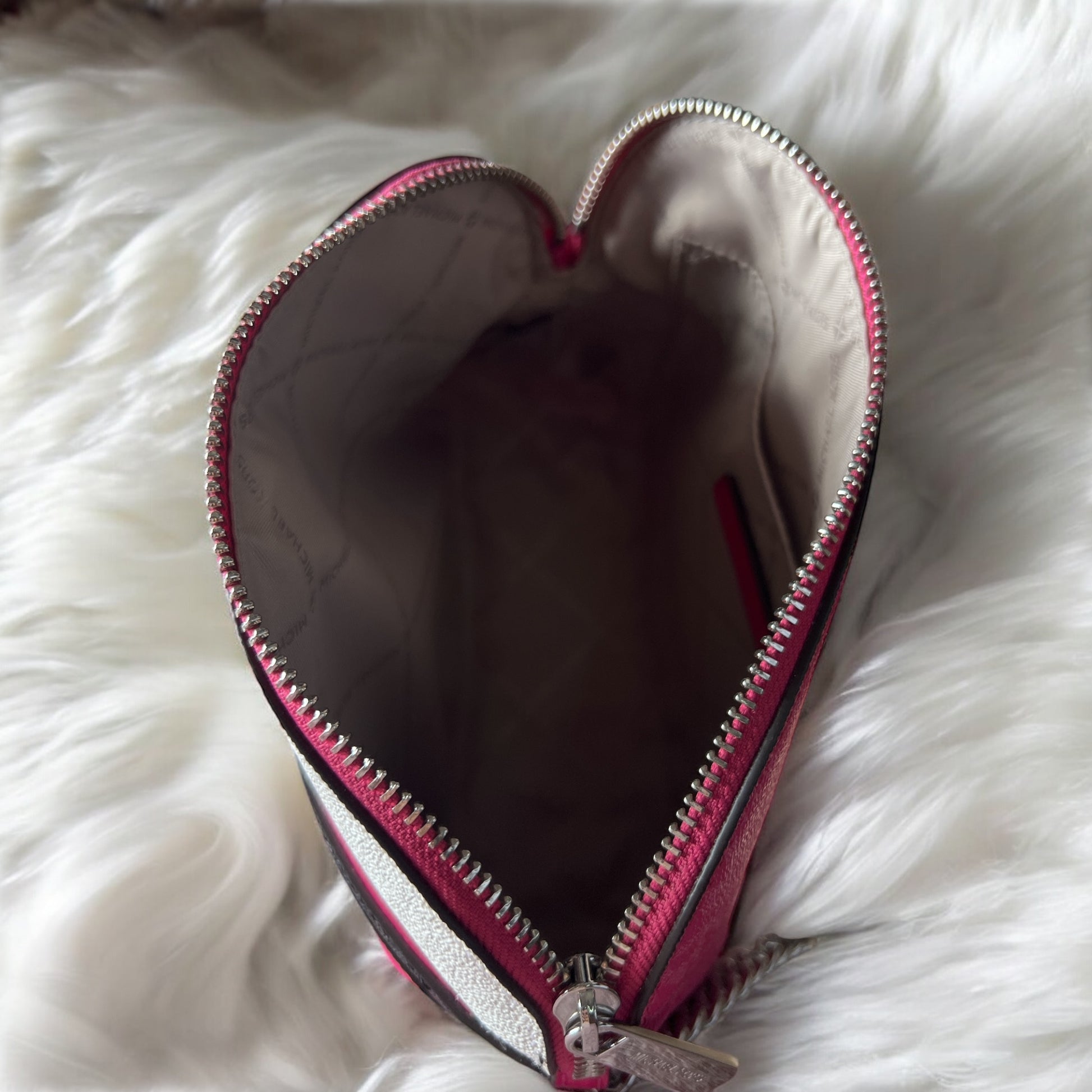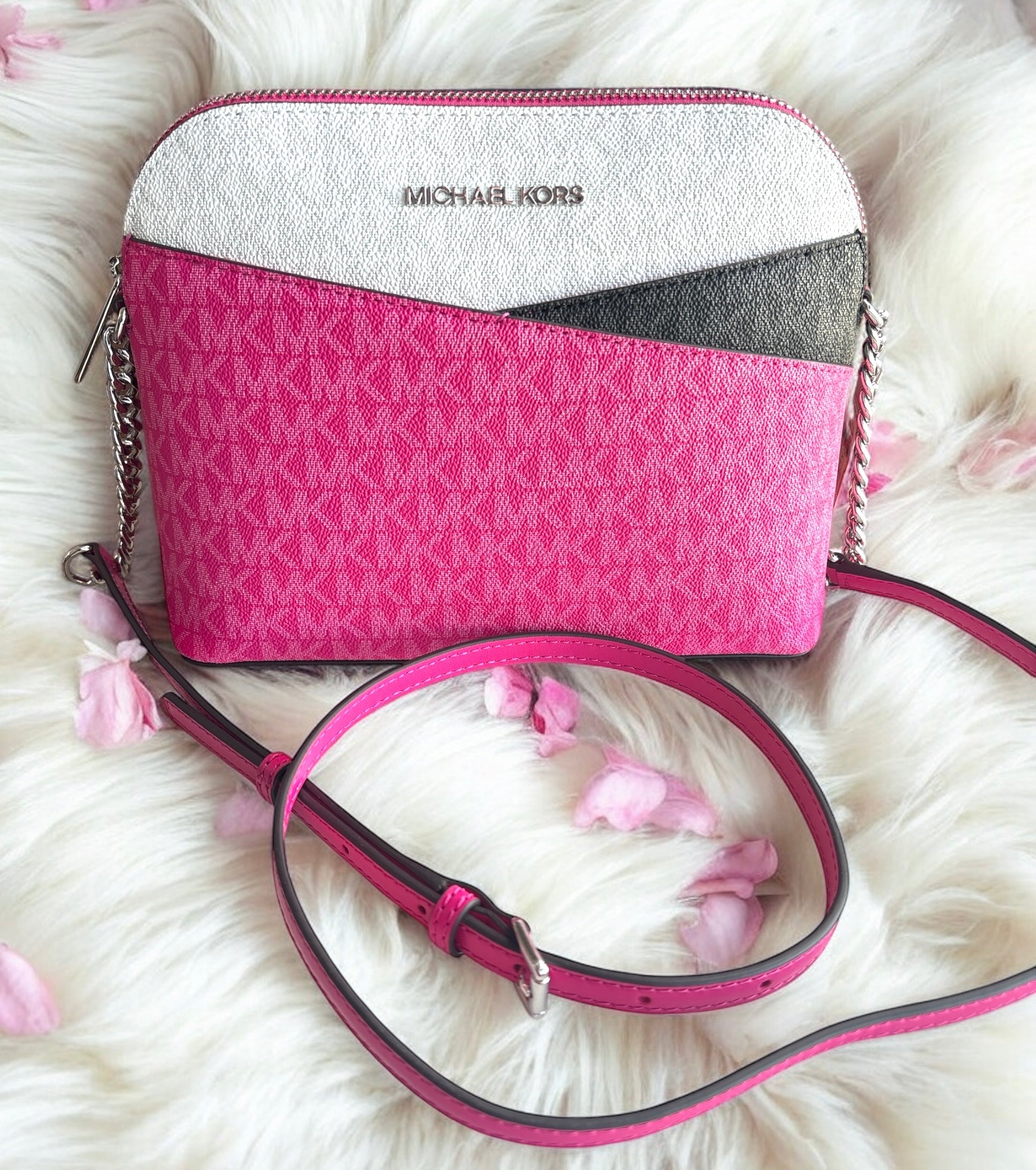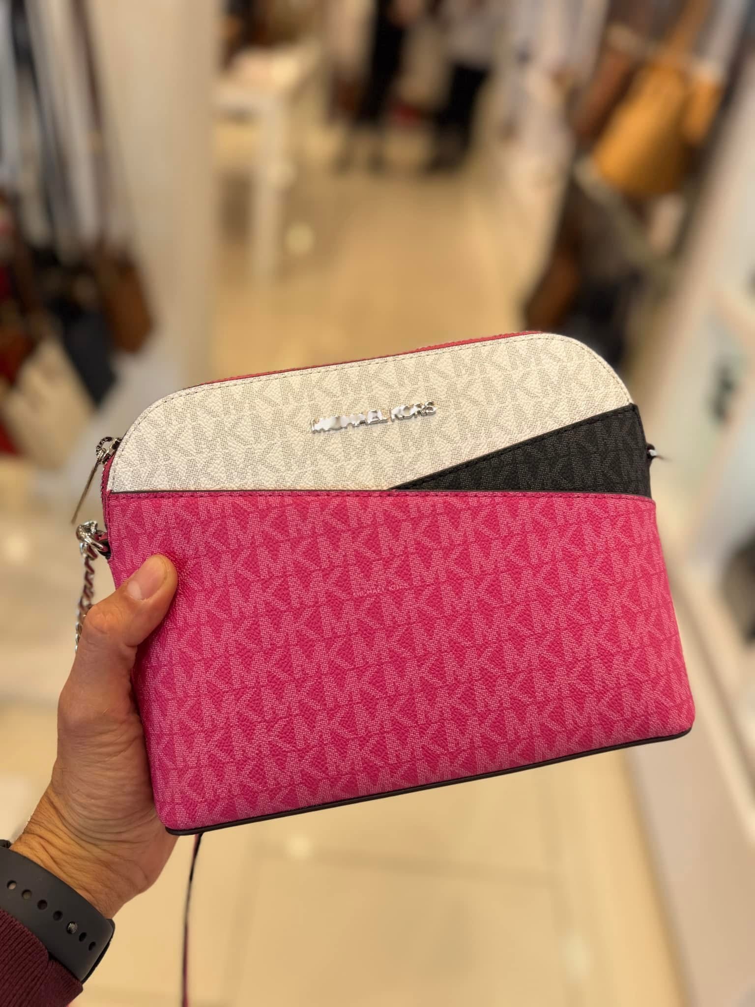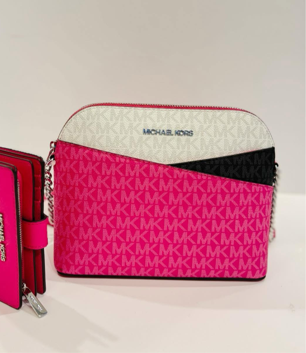 Crossbody Michael k rosa con monogram y detalles en color negro y blanco