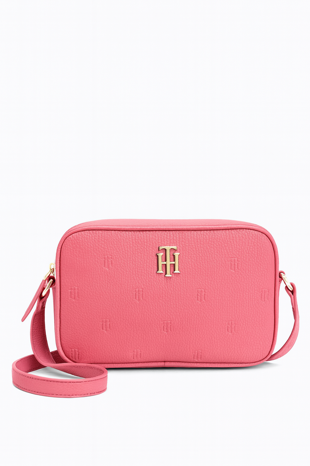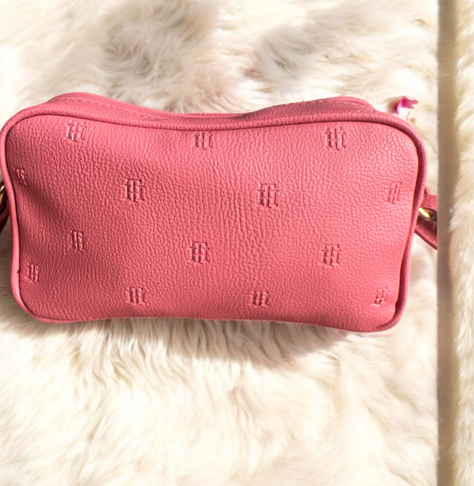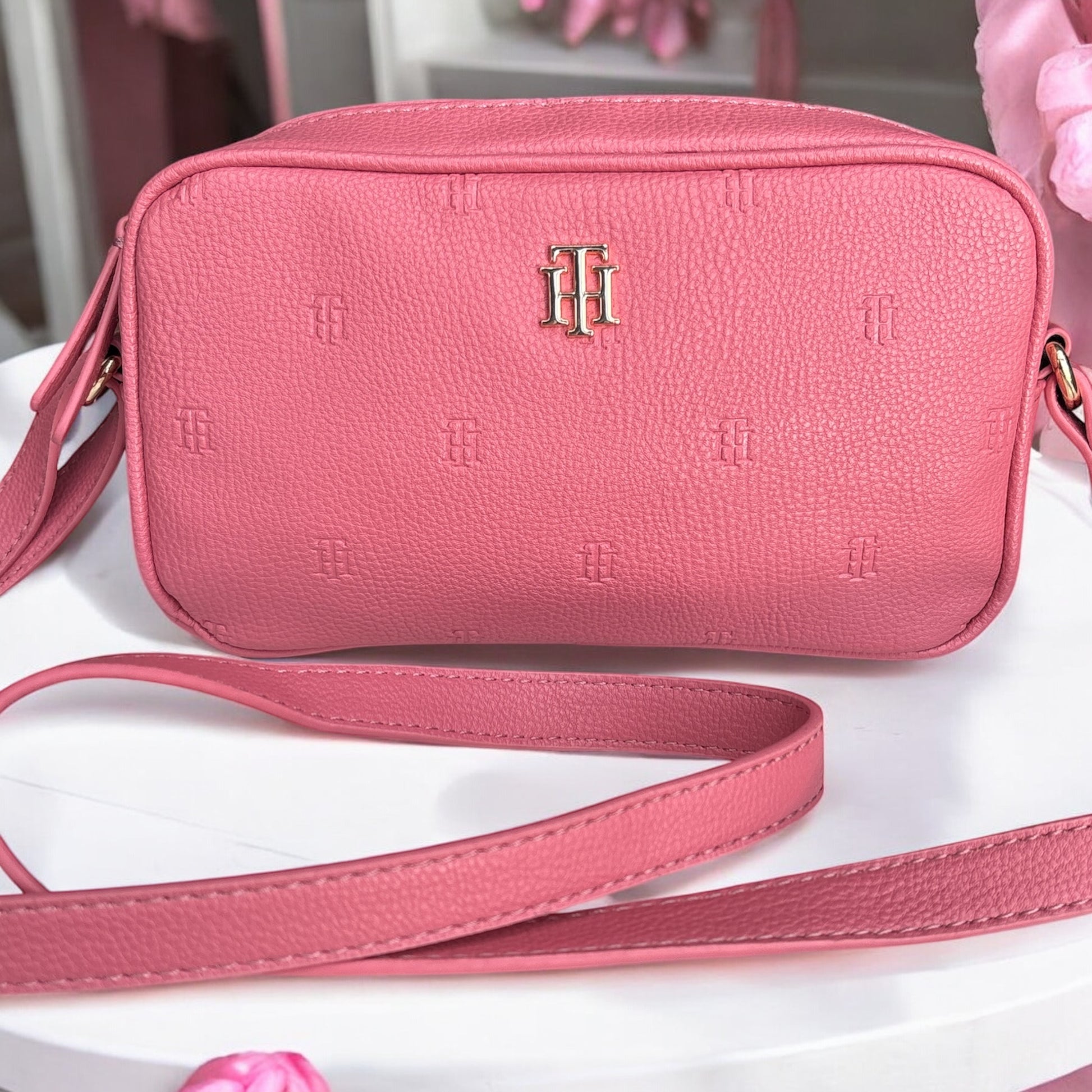 Crossbody Tommy H rosa con placa dorada