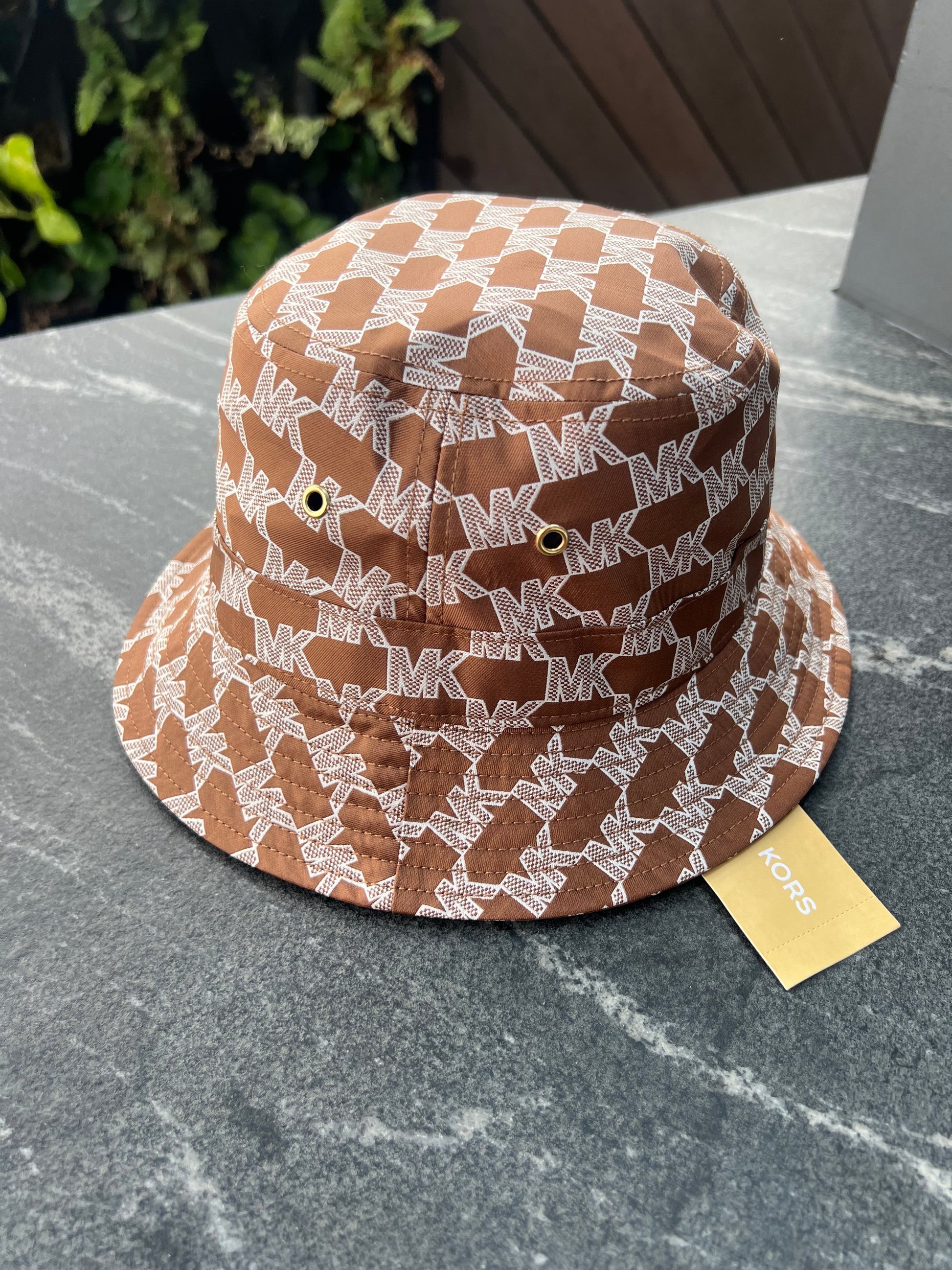Gorro Bucket Michael k café/blanco con monogram