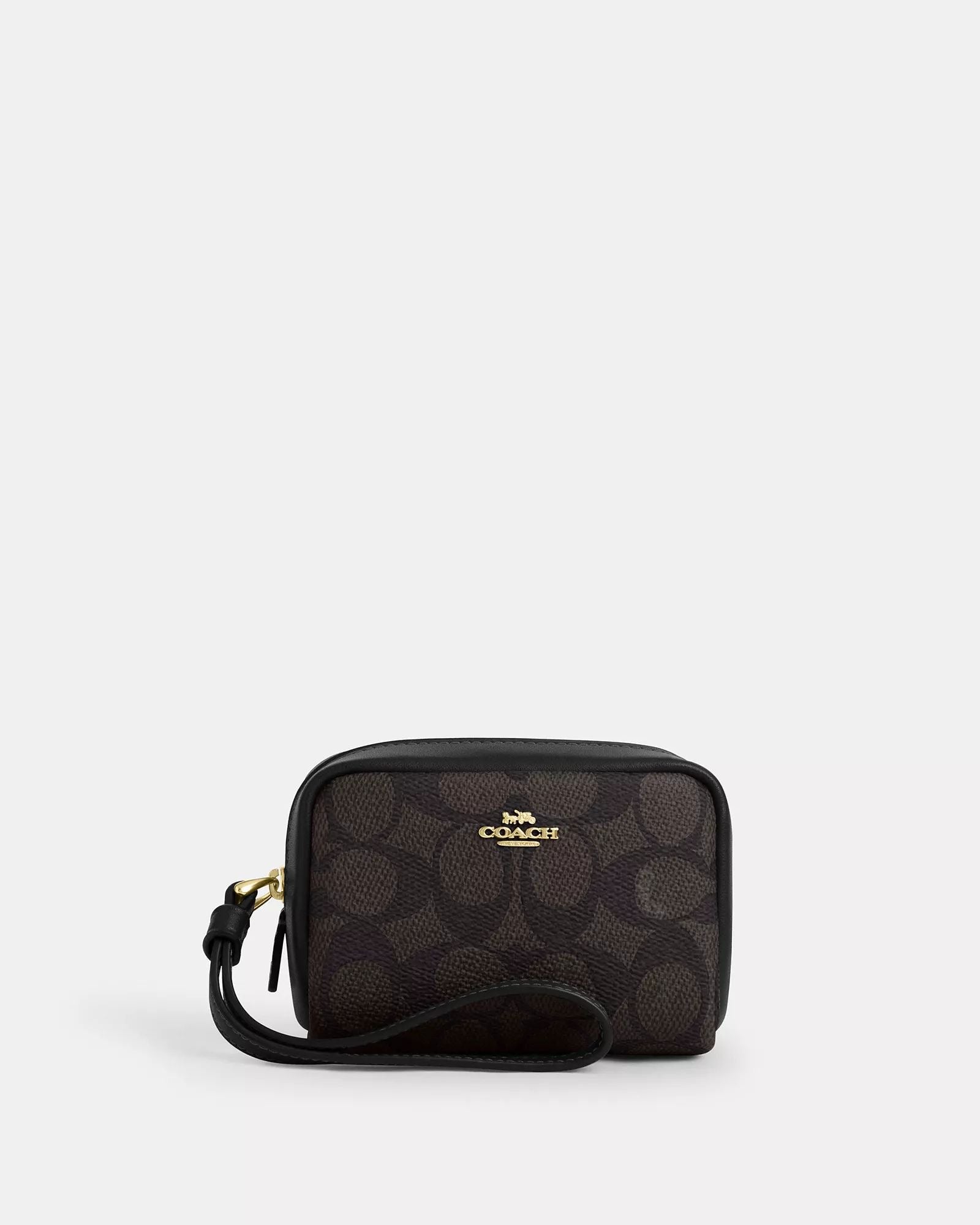 Este elegante monedero Coach combina la resistencia del canvas con la elegancia del color chocolate y placa dorada. Además, cuenta con una correa ajustable que lo hace práctico para cualquier ocasión. Un accesorio hermoso y duradero para llevar tus objetos de valor con estilo.