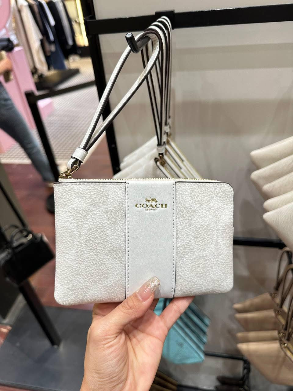 Muñequera Coach blanca/crema, monogram y strap