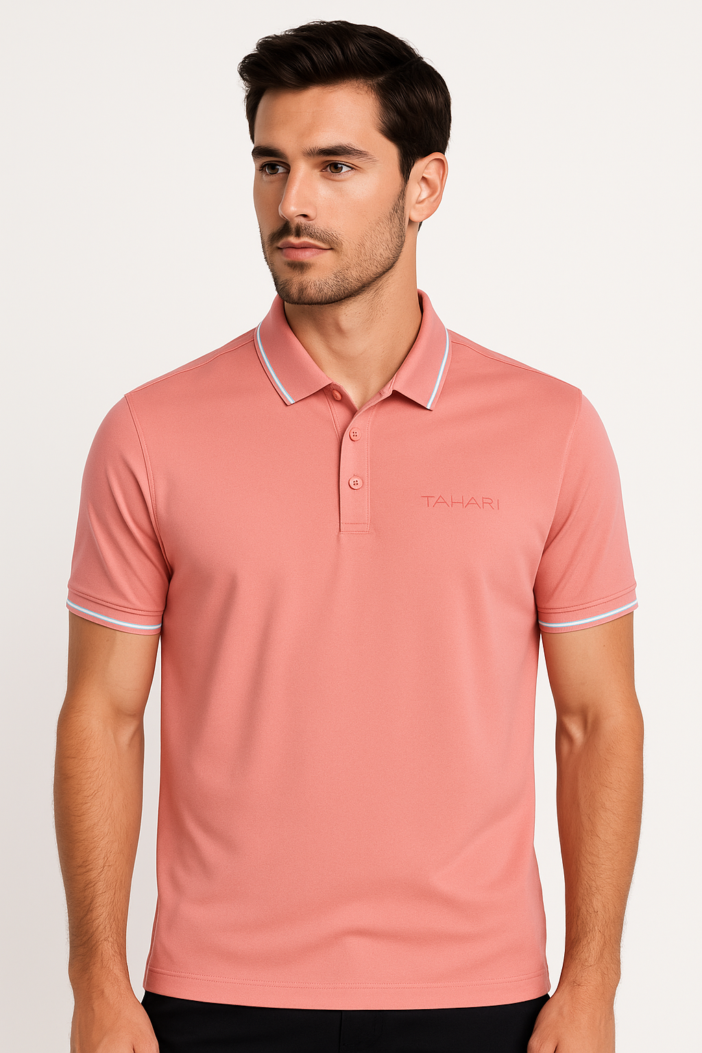 Esta playera tahari de color mamey es perfecta para un look casual sin dejar de lado el estilo. Confeccionada con materiales de alta calidad, esta prenda es cómoda y duradera. Combínala con unos jeans y zapatos deportivos para un look relajado y a la moda. ¡Ideal para cualquier ocasión!