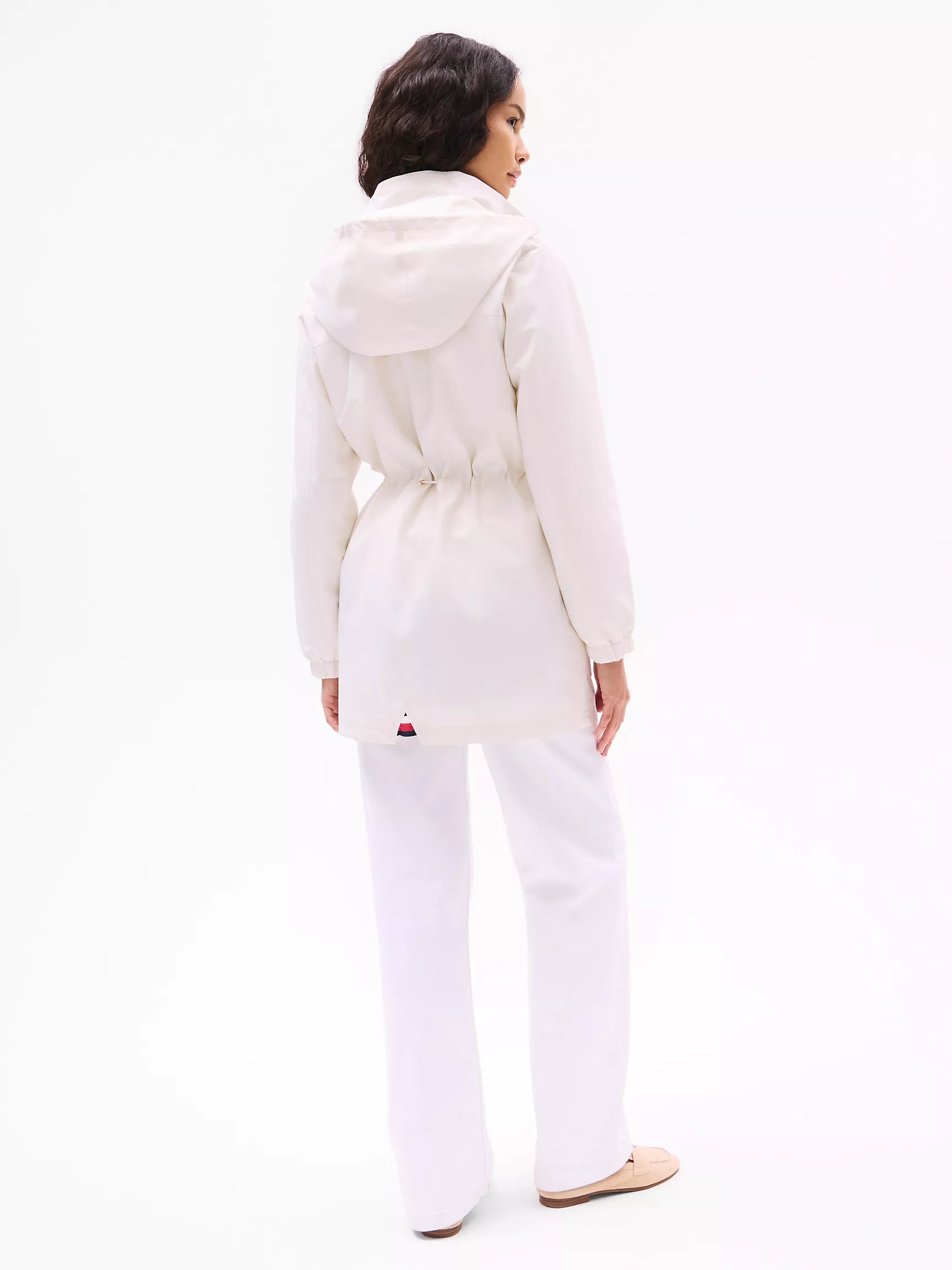 Rompevientos Tommy H blanco con herrajes dorados y gorro